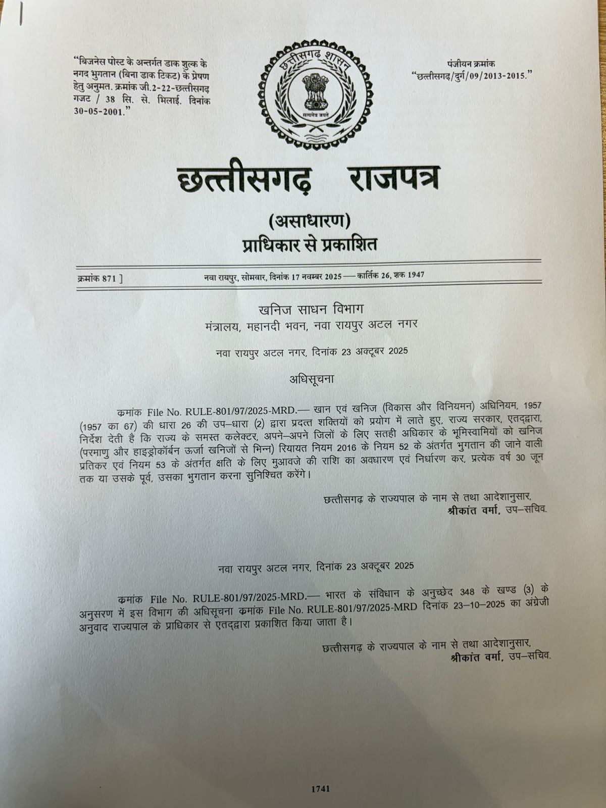 छत्तीसगढ़ सरकार ने केंद्र के ऐतिहासिक आदेश के बाद जारी किया सर्फेस राइट फ्रेमवर्क: नीलाम खदानों को बड़ी राहत